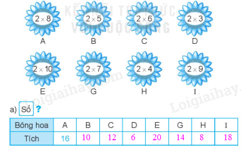 So sánh kết quả ở bốn bông hoa C, D, E, G rồi điền vào chỗ chấm.