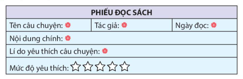 Viết phiếu đọc sách theo mẫu.