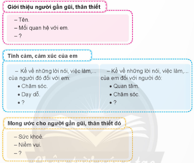 Chia sẻ với bạn tình cảm, cảm xúc của em với một người gần gũi, thân thiết dựa vào gợi ý: