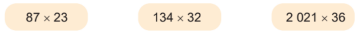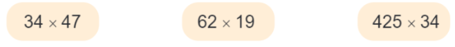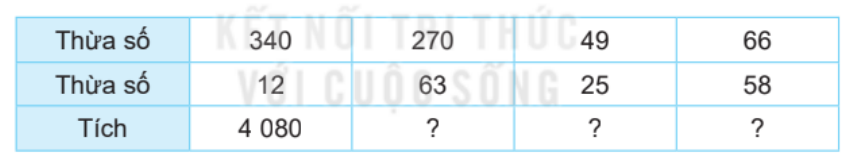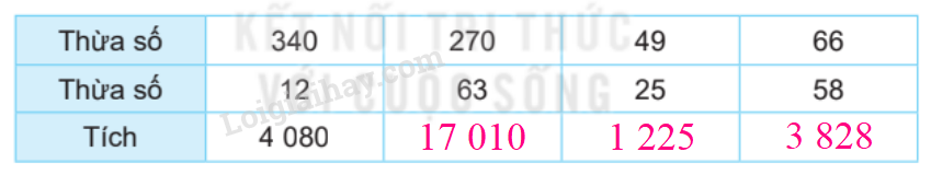 Từ các thừa số và tích tương ứng, hãy lập các phép nhân thích hợp.
