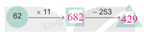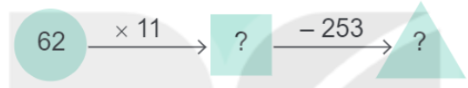b) Thực hiện các phép tính theo chiều mũi tên rồi điền kết quả thích hợp vào chỗ trống.