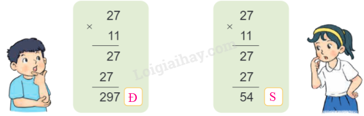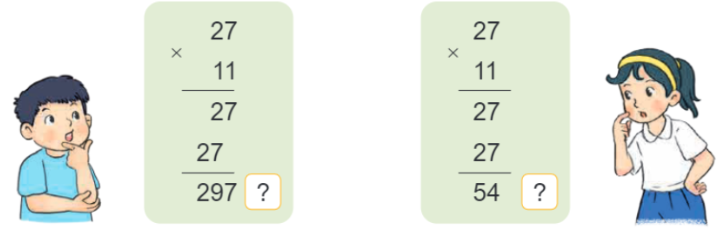 b) Khi nhân với 11 thì tích riêng thứ nhất bằng tích riêng thứ.