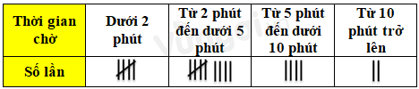 – Xác định số lần Sơn phải chờ xe từ 5 phút trở lên: Từ 5 phút đến dưới 10 phút + Từ 10 phút trở lên.