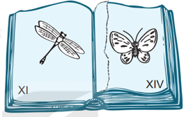 Đếm số từ XI đến XIV và quan sát tranh sẽ tìm được trang sách bị mất.