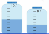 Quan sát số lít ở mỗi bình rồi viết biểu thức gộp lượng nước ở hai bình