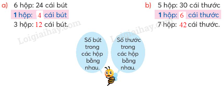 a) Số cái bút trong 1 hộp = số cái bút trong 6 hộp : 6