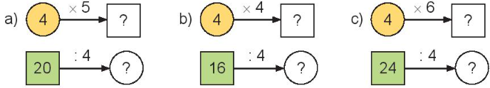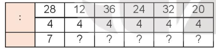 Tính nhẩm dựa vào bảng chia 4 rồi điền kết quả còn thiếu vào chỗ trống.