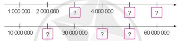 – Tia số thứ hai: Đếm thêm 10 000 000 rồi viết số còn thiếu vào ô trống.