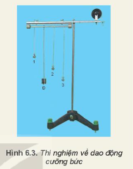 – Hãy dự đoán xem, trong thí nghiệm Hình 6.3, nếu con lắc điều khiển Đ được kéo sang một bên theo phương vuông góc với thanh rồi thả ra cho dao động thì các con lắc khác có dao động không? Con lắc nào dao động mạnh nhất? Tại sao?