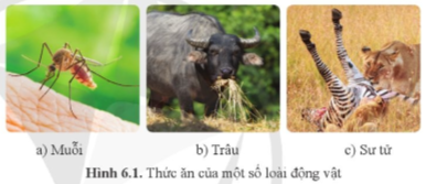 Muỗi, trâu và sư tử có ăn những loại thức ăn khác nhau nên quá trình tiêu hóa và dinh dưỡng của chúng khác nhau.