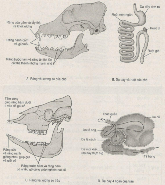 Thú ăn thịt có răng sắc nhọn hơn, ruột ngắn hơn