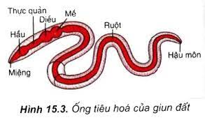 Cơ quan tiêu hóa của giun đất: miệng → hầu → thực quản → diều → mề → ruột → hậu môn