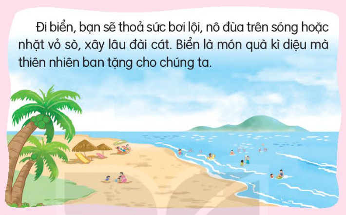 b. Đi biển, chúng ta có thể bơi lội, nô đùa trên sóng, nhặt vỏ sò, xây lây đài cát.