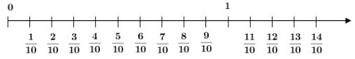 Viết phân số thập phân thích hợp vào chỗ chấm dưới mỗi vạch của tia số :