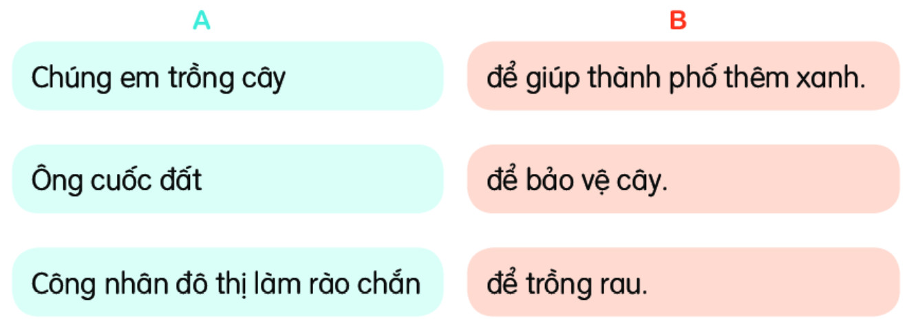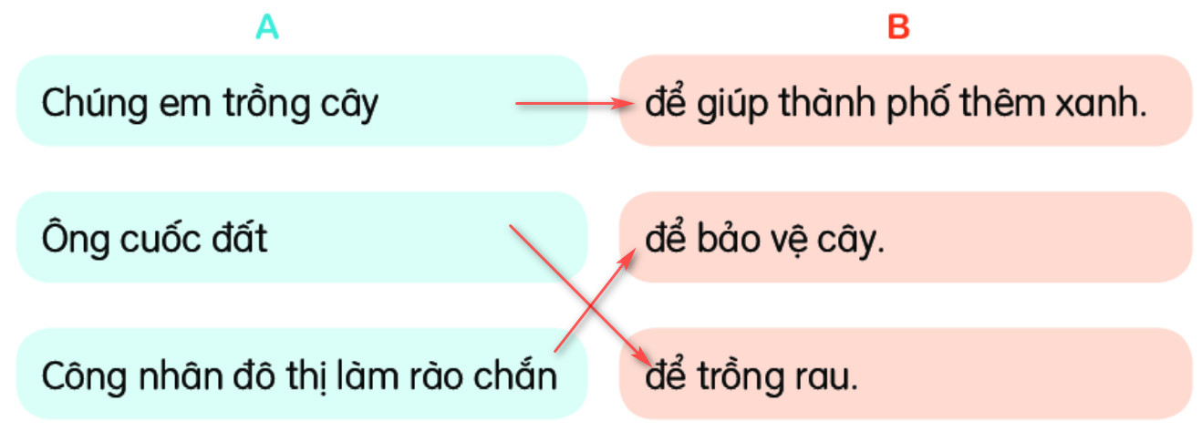 Câu 3: Kết hợp từ ngữ ở cột A với từ ngữ ở cột B để tạo câu.