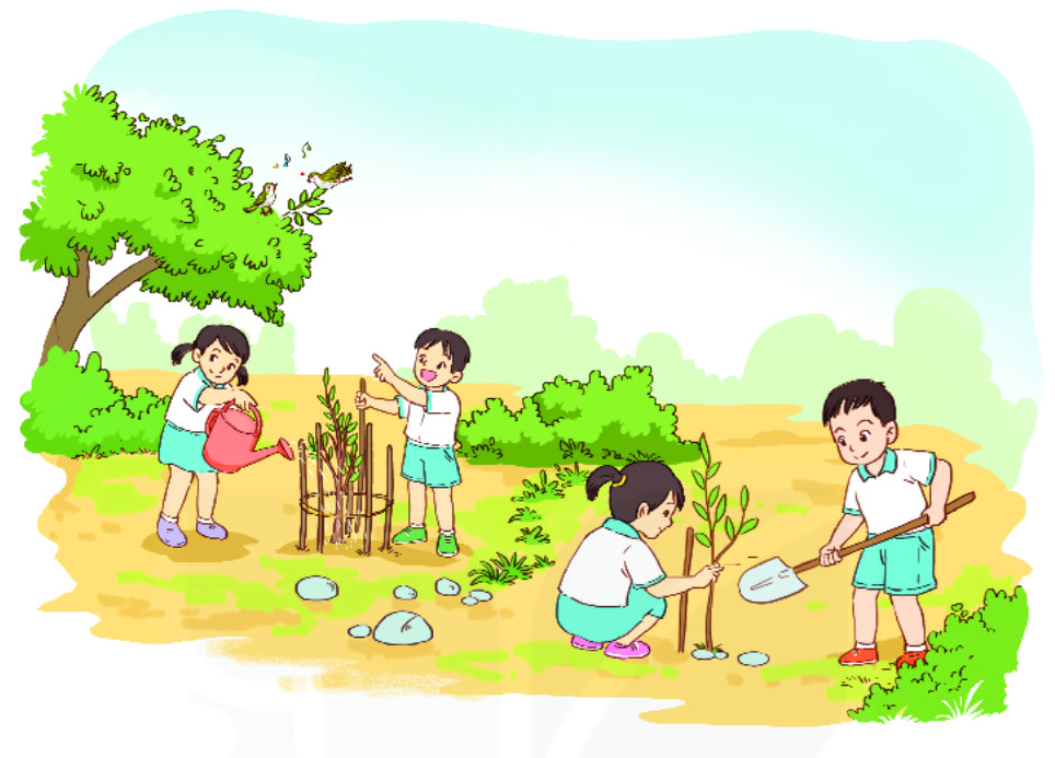 G: – Em và các bạn đã làm việc gì để chăm sóc cây?