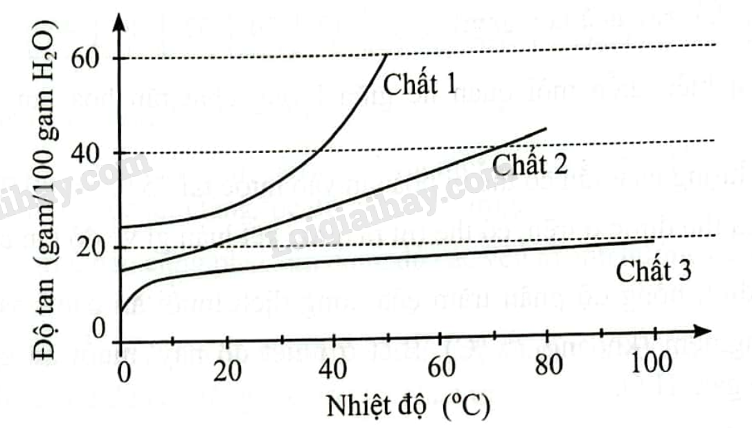 Đồ thị sau cho biết ảnh hưởng của nhiệt độ đến độ tan của ba chất khác nhau trong nước.