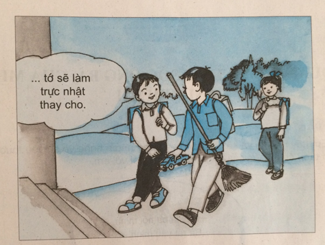 Tình huống 2: Hôm nay, đến phiên Xuân làm trực nhật lớp. Tú bảo: “Nếu cậu cho tớ mượn chiếc ô tô đồ chơi của cậu thì tớ sẽ làm trực nhật thay cho”