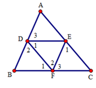 Từ (1) và (2) suy ra \(\Delta ADE = \Delta EFC = \Delta DBF\)                      (3)