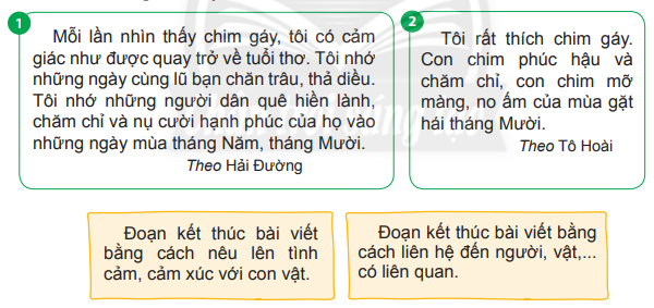 – Đoạn kết thúc bài viết bằng cách nêu lên tình cảm, cảm xúc với con vật: 2