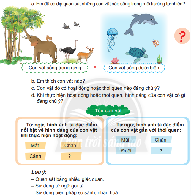 Quan sát một con vật sống trong môi trường tự nhiên mà em thích và ghi lại những điều quan sát được.