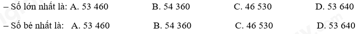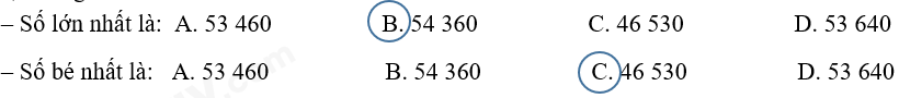 – Các số đã cho theo thứ tự từ lớn đến bé: 54 360; 53 640; 53 460; 46 530.
