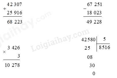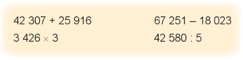 Nhớ lại cách đặt tính và tính các phép toán đã học rồi trình bày bài.
