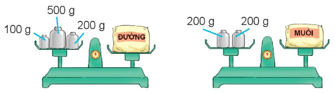 b) Cân nặng của túi muối là 200 + 200 = 400 (g)