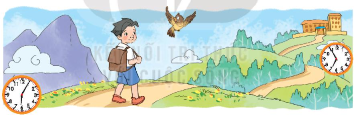 Dựa vào thời gian bắt đầu đi và thời gian đến trường để trả lời câu hỏi.