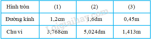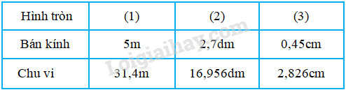 Giải bài tập 1, 2, 3 trang 11 VBT toán 5 bài 95 : Chu vi hình tròn với lời giải chi tiết và cách giải nhanh, ngắn nhất