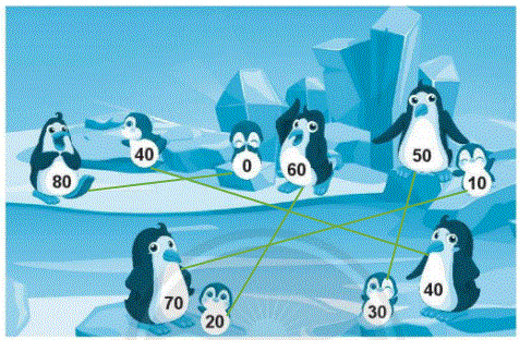 Nối hai số có tổng bằng 80 để giúp chim mẹ tìm con.