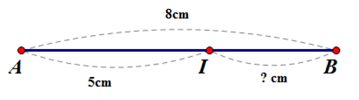 Cho điểm I thuộc đoạn thẳng AB. Biết $AI = 5cm,AB = 8cm.$ Tính độ dài $BI.$