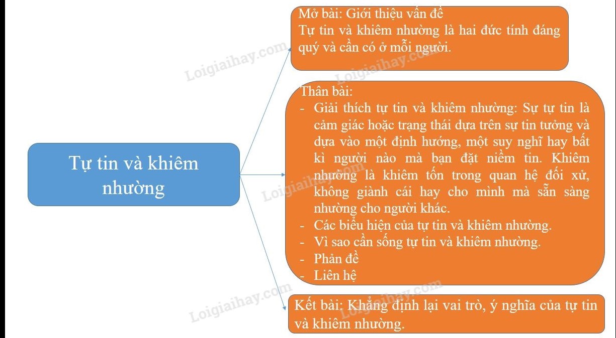 Lập dàn ý cho đề văn: Trình bày ý kiến của em về vấn đề “Tự tin và khiêm nhường” bằng một sơ đồ tư duy.