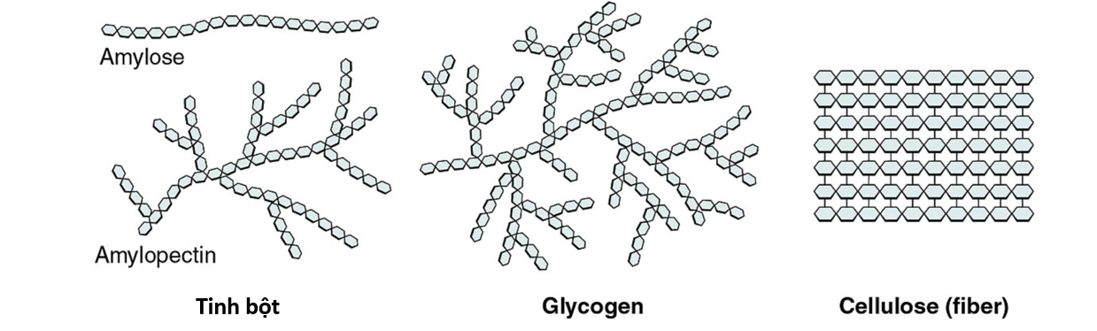 • Glycogen là đường dự trữ năng lượng trong cơ thể động vật và một số loài nấm.