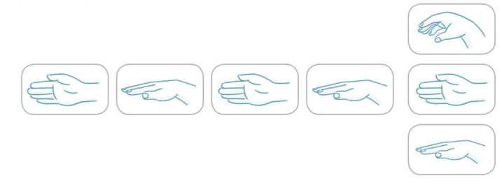 Đọc 4 nốt nhạc ký hiệu bàn tay ở hàng ngang, và 1 nốt tự chọn ở hàng dọc