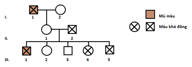 Người III1 là con trai, bị máu khó đông và bị mù màu