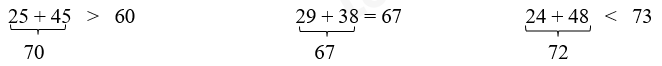 Câu 4. Dấu cần điền vào chỗ chấm 50 + 24 …. 20 + 56. Dấu cần điền vào chỗ chấm là: