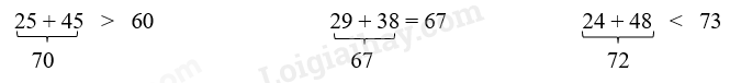 Câu 4. Dấu cần điền vào chỗ chấm 50 + 24 …. 20 + 56. Dấu cần điền vào chỗ chấm là: