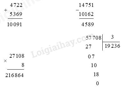 – Với phép cộng, phép trừ: Cộng hoặc trừ các chữ số lần lượt từ phải sang trái.