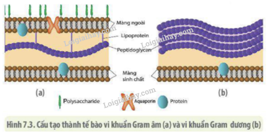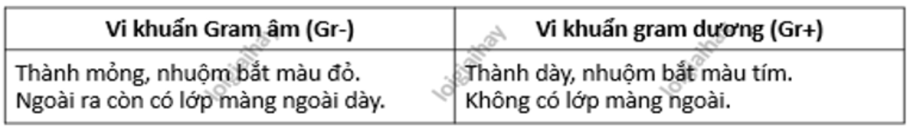 Dựa vào cấu tạo của thành tế bào của hai nhóm vi khuẩn Gram âm và Gram dương được thể hiện ở bài Tế bào nhân sơ để chỉ ra sự khác biệt về cấu trúc: