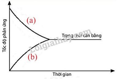 Đường (a) biểu diễn sự thay đổi tốc độ phản ứng thuận và đường (b) biểu diễn sự thay đổi tốc độ phản ứng nghịch.