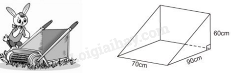 Thùng đựng của một máy cắt cỏ có dạng lăng trụ đứng tam giác. Hãy tính thể tích của thùng.
