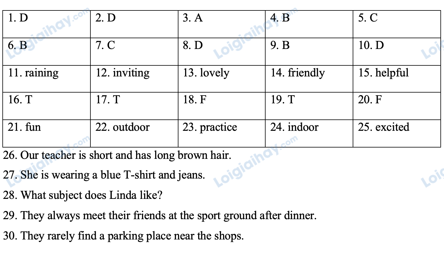 26. Our/ short/ has/ hair/ is/ brown/ teacher/ and/ long/