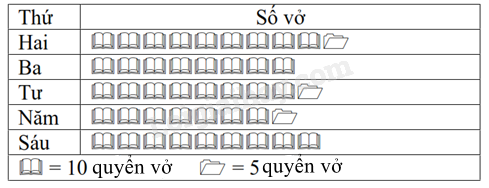 Biểu đồ tranh dưới đây cho biết số quyển vở của cửa hàng sách – thiết bị trong tuần (cửa hàng nghỉ bán thứ bảy và chủ nhật).