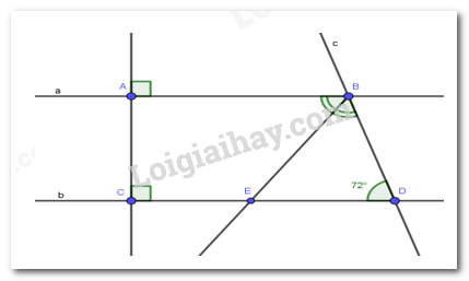 Nên \(\widehat {ABE} = \dfrac{{\widehat {ABD}}}{2} = \dfrac{{{{108}^0}}}{2} = {54^0}\)