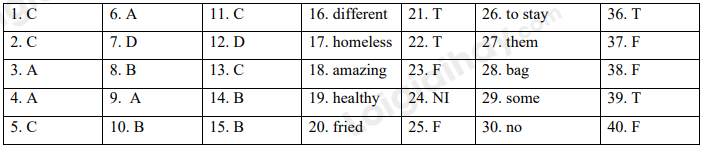 Jack fell off the ladder while he was fixing the roof this afternoon. He hurt his head, so I need (26. stay/ staying/ to stay/ to staying) in the hospital with him tonight. Can you take care of the children? They love spending time with their auntie. I’ll be home tomorrow. There’s enough food for you all. I bought some chicken and a lettuce this morning. I put (27. it/ them/ some/ many) in the fridge. There are some onions, potatoes, gingers and a (28. bag/ can/ jar/ carton) of rice in the bottom cupboard next to the fridge. You can use them to make chicken curry if you like. There are two cans of tuna in the cupboard above the oven, in case you want to make tuna salad. I also bought a tub of vanilla ice cream. You can have (29. little/ a lot/ much/ some) of the ice cream for dessert after dinner. Don’t let the children eat too much, or they may have a stomachache. Unfortunately, there is (30. some/ much/ not/ no) milk left. Can you buy two bottles of milk on your way here? Call me if you have any problems or questions.