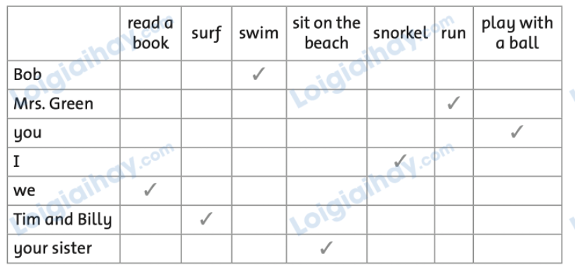 (Những con chim cánh cụt đnag làm gì? – Chúng đang bơi.)