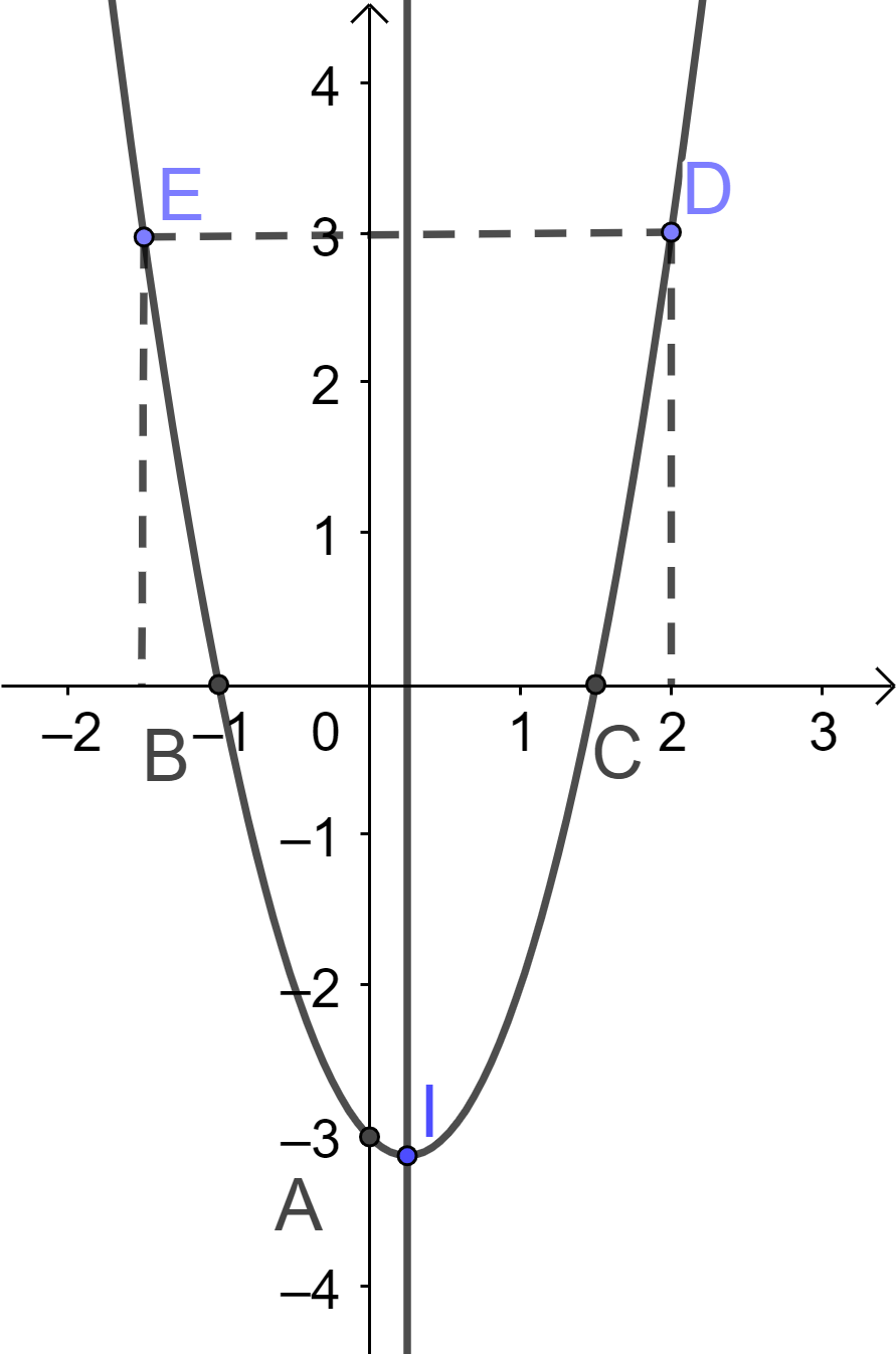 + Giá trị nhỏ nhất của hàm số là \( – \frac{{25}}{8}\)tại \(x = \frac{1}{4}\)nên đỉnh của đồ thị hàm số là \(I\left( {\frac{1}{4}; – \frac{{25}}{8}} \right)\)