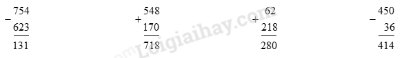754 – 623                    548 + 170                    62 + 218                     450 – 36