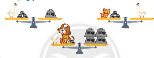 Từ đó em xác định được cân nặng của mỗi con vật.
